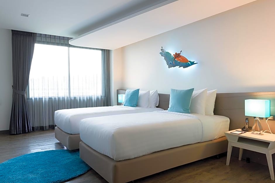 Guests at The Xtreme Hotel can enjoy their time by taking advantage of the leisure amenities available. They can relax in the outdoor swimming pool which offers a rooftop view. Families with children can make use of the kids' pool. For those looking to unwind, there is a hot spring bath available. The hotel also provides beach chairs and loungers for guests to sunbathe or enjoy the view. Visitors can work out at the fitness center or enjoy spa and wellness packages. Additionally, the 24-hour front desk, private parking, and room service are available to enhance their stay.