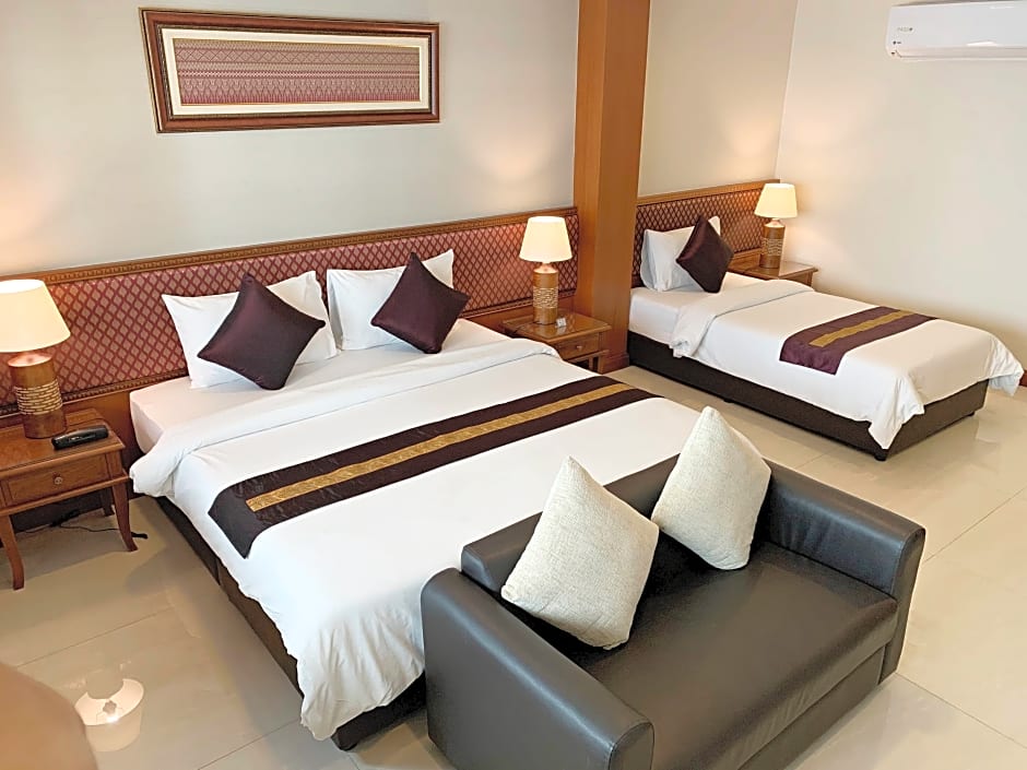 The True Siam Rangnam Hotel offers Superior Double or Twin Rooms and Deluxe Triple Rooms. The Superior Double or Twin Rooms have a room size of 291 sqft and can accommodate 2 adults and 1 child. There is 1 King size bed or 2 Twin beds available. The Deluxe Triple Rooms have a larger room size of 344 sqft and can accommodate 2 adults and 1 child. There is 1 King size bed and 1 Twin bed available. Smoking is not allowed in any of the rooms.