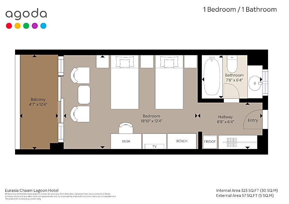At Eurasia Cha-Am Lagoon, the hotel offers a variety of room types including villas and twin rooms. Villas are available in sizes ranging from 1033 sqft to 1733 sqft and can accommodate between 4 to 8 adults, with either twin beds or a combination of twin and king size beds. The Superior Lakeview and Superior Beachwalk rooms are both twin rooms, with the former accommodating 2 adults and 1 child and the latter accommodating 2 adults. Smoking is not allowed in any of the rooms.