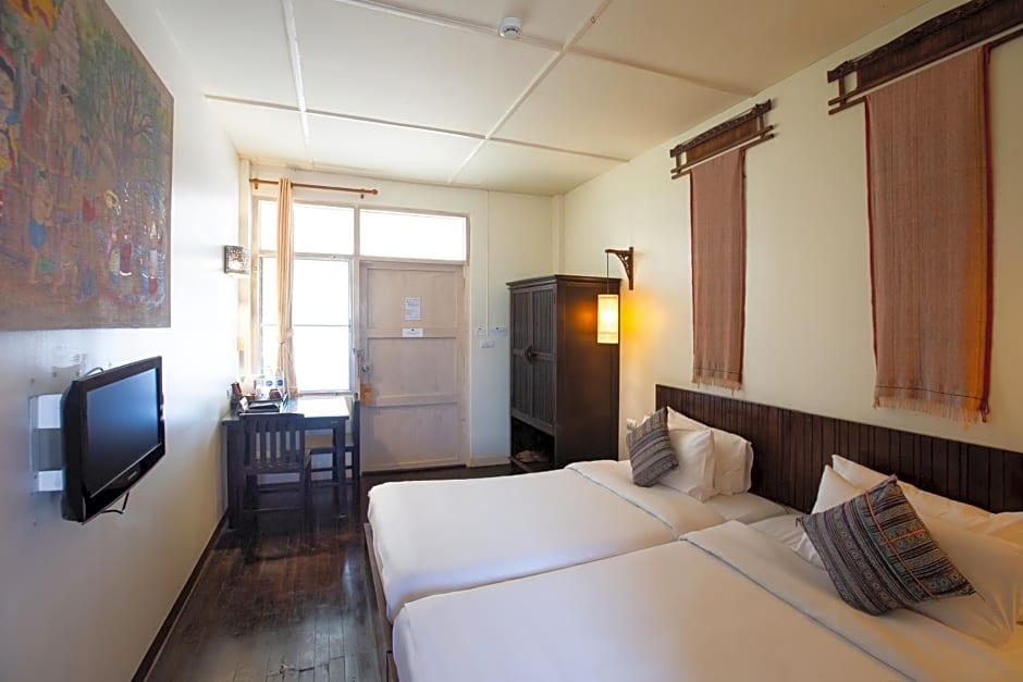 The Eco Resort Chiang Mai offers a variety of room types including Deluxe Double or Twin Rooms with Pool View, Deluxe Twin Rooms, Bunk Bed Dormitory Rooms with Shared Bathrooms, Superior Twin Rooms, and Twin Bed Rooms with Shared Bathrooms. Smoking is not allowed in any of the rooms. The rooms can accommodate either 2 adults and 2 children or 2 adults only. Bed sizes range from Queen size beds to Twin beds.