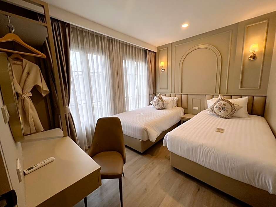 Eurana Boutique Hotel offers a variety of rooms including Deluxe Twin Room, Premier Double or Twin Room, Premier Triple Room, Superior Double or Twin Room, Premier Family Room, and Junior Suite. The rooms accommodate different numbers of guests ranging from 2 to 4 adults with bed sizes varying from Twin, Double, to Queen beds. Smoking is not allowed in any of the rooms.