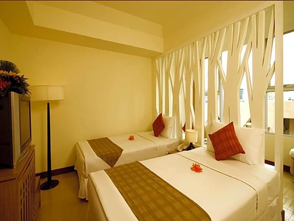 The spacious twin room features a private bathroom, air conditioning, a tea and coffee maker, as well as a seating area with a flat-screen TV. Rooms on the upper floors are reachable by elevator. The unit offers 2 beds.