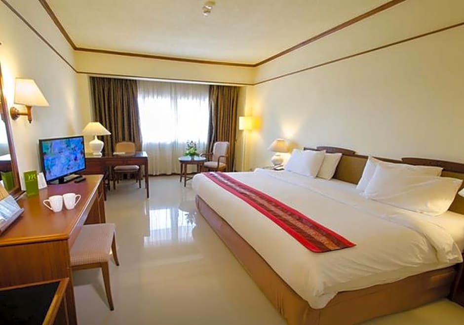 The Mercure Chiang Mai offers a variety of room types including Deluxe Twin Rooms, Deluxe King Rooms, Junior King Suites, Superior Twin Rooms, Superior King Rooms, Standard King Rooms, and Standard Twin Rooms. All rooms have a size of 344 sqft and do not allow smoking. The rooms can accommodate 2 adults and 2 children and have either twin beds or a king-size bed.