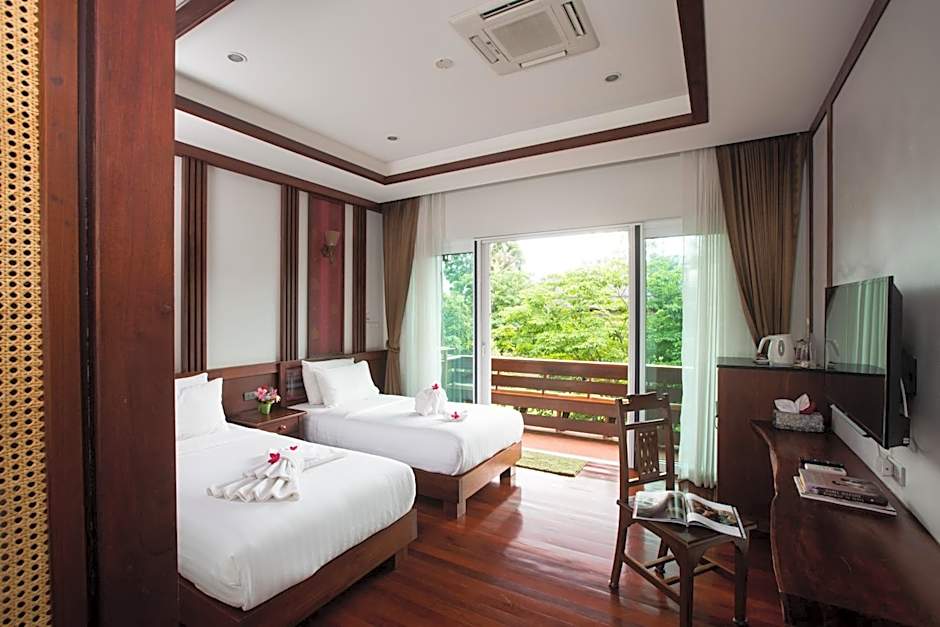 The hotel offers twin rooms with bed sizes of 2 x Twin beds. The Rosewood Deluxe Twin has a larger room size of 484 sqft, while the Ruen Mai Twin Room is slightly smaller at 388 sqft. Smoking is not allowed in either of these rooms. The twin rooms can accommodate 2 adults and 1 child.