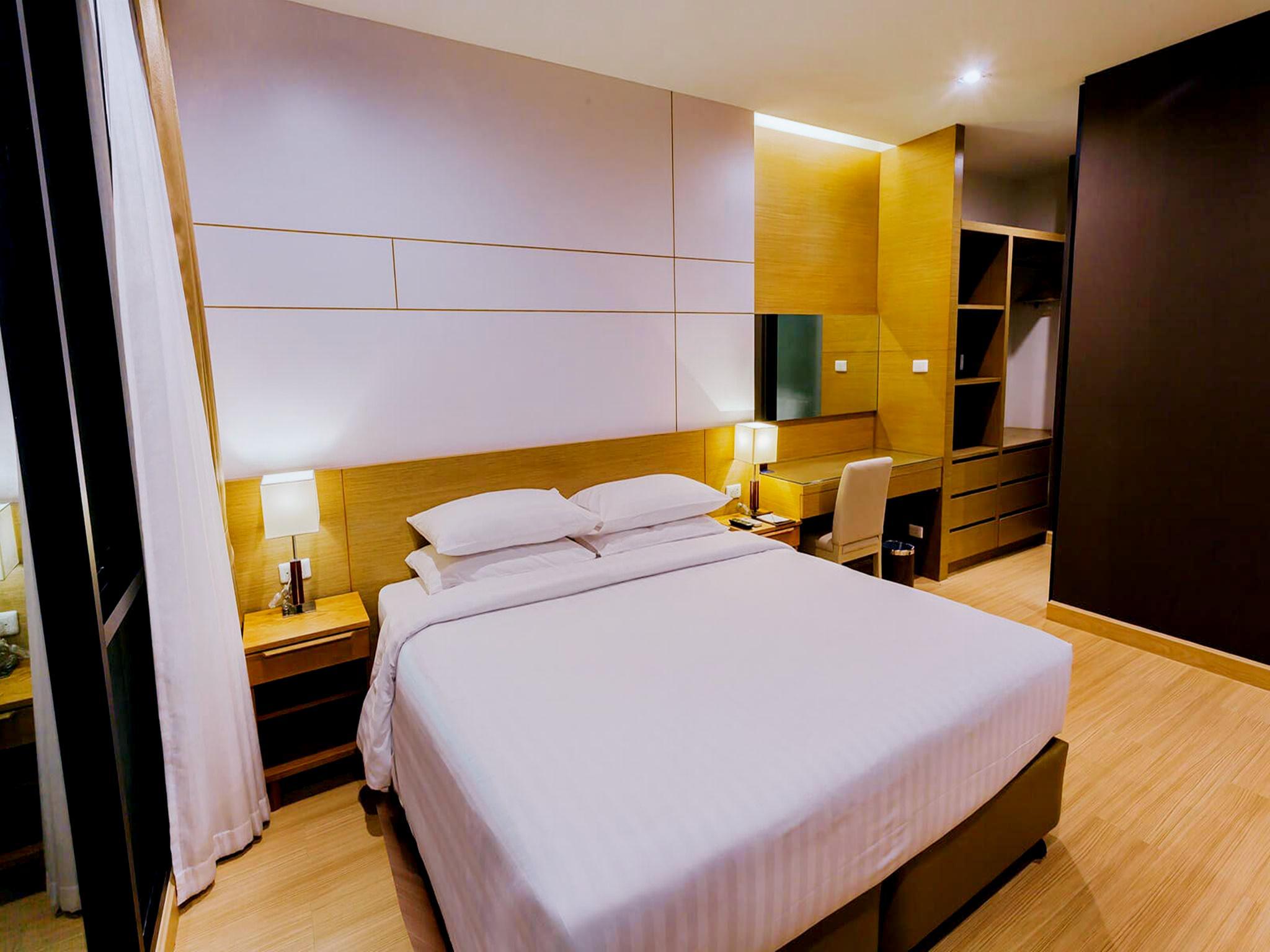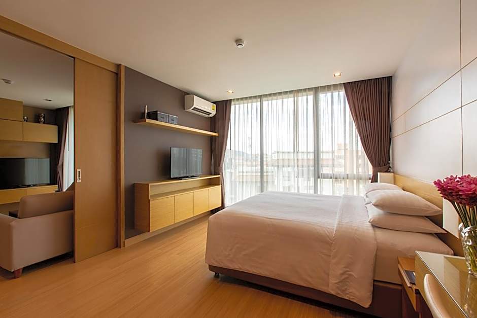 The stylish suite features high ceilings and a separate living/dining and sleeping area. Highlighted room amenities include a kitchenette, 2 air conditioners and a 50-inch flat-screen TV. Benefits include: - In-room check-in - Welcome drink and fruit basket - A complimentary 4 bottles of water per day - A complimentary mini-bar