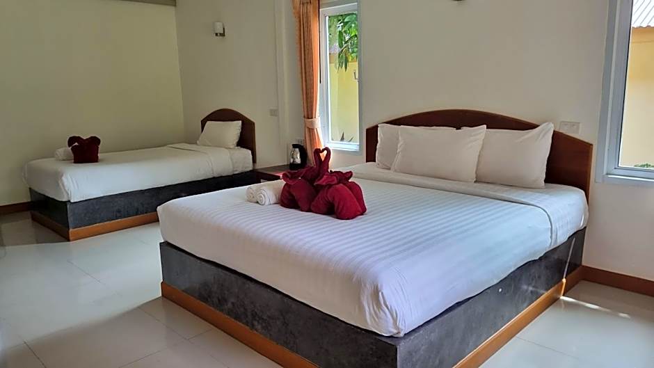 PawPaw Resort offers a variety of rooms including Standard Bungalows, Deluxe Bungalows with Garden View, One-Bedroom Bungalows, Bungalows, Family Bungalows, Bungalows with Sea View, and Bungalows with Garden View. Smoking is not allowed in any of the rooms. The occupancy ranges from 2 adults in the Standard and One-Bedroom Bungalows, to 4 adults in the Family Bungalow. The bed sizes vary, with options including Queen size, Twin beds, and Double beds. The room sizes range from 323 sqft to 904 sqft.