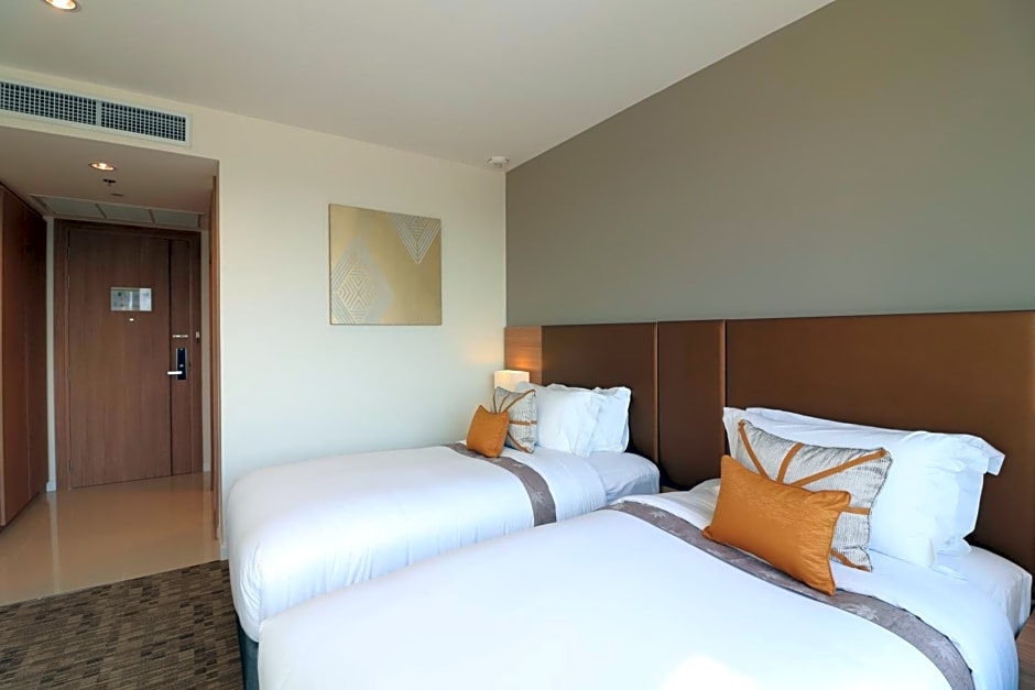 The Grand Fortune Hotel Nakhon Si Thammarat offers a variety of room types, including Deluxe King Rooms, Superior King Rooms, and Superior Twin Rooms. These rooms can accommodate 2 adults and have sizes ranging from 301 sqft to 409 sqft. None of the rooms allow smoking and the bed sizes vary, with options for King size beds, Queen size beds, and Twin beds.