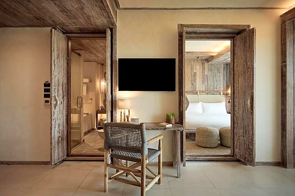 1 Bedroom Suite Pool View is 646 square feet and includes a double bed 131-150 width plus hairdryer, tea and coffee making facilities , safe, and bathrobes.