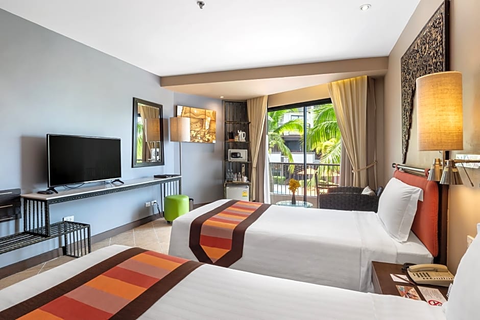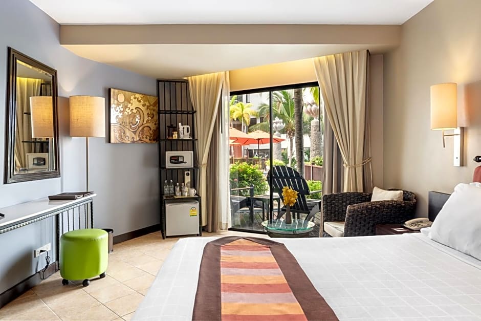 The hotel has an on-site restaurant called Chom Talay offering a modern ambiance and serving American, Pizza, Thai, Asian, and International cuisines exclusively.