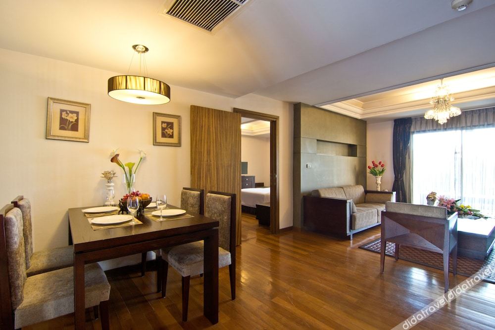 The hotel offers various types of rooms including Two-Bedroom Mantra Suite, Deluxe Double Room with Pool Access, Deluxe Triple Room, One-Bedroom Mantra Suite, and Deluxe Double or Twin Room. Smoking is not allowed in any of the rooms. The occupancy ranges from 2 adults in some rooms to 4 adults in others. The bed sizes vary from double beds to king size beds, with some rooms also having twin beds. The room sizes range from 431 sqft to 1292 sqft.
