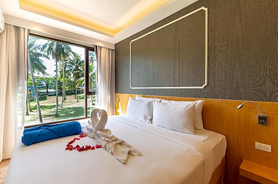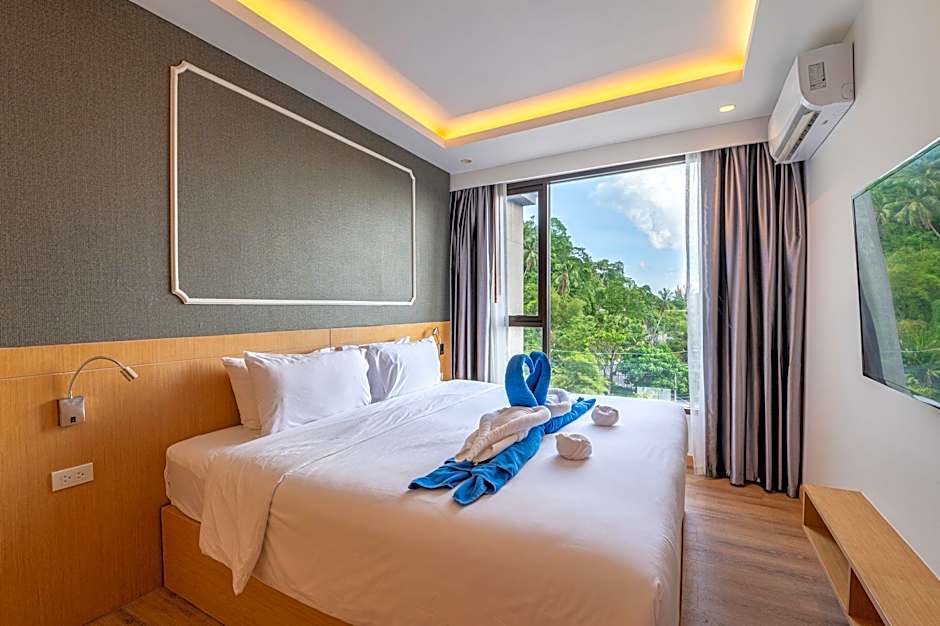 Surin Beach proves to be a breezy coastal base, where a rooftop outdoor pool glints above the palm-fringed grounds. Lounging lanes on the sun deck mix with garden views, a terrace, and beach chairs for lazy afternoons. On-site perks include free private parking and a free fitness center, plus a Netflix-style streaming service for easy movie nights after sunset.