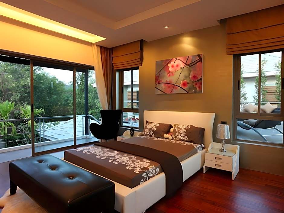Featuring a spacious living and dining area that opens up to the pool deck on the ground floor, the luxurious villa also comes with a fully equipped kitchen. The bedrooms all has a walk-in closet and an private bathroom. Guests can relax at the open pavilion by the pool or make use of the outdoor shower and sauna.