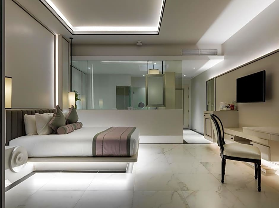 Boasting 47-sqm of living space, the room comes with views of the swimming pool which can be directly accessible from the room. Room amenities include a well-stocked mini-bar, tea/coffee maker, a safety deposit box and a flat-screen LCD TV. Please note that a third person will be provided with a roll-away bed. Room benefits include: - Daily one cocktail drink for 2 people at the restaurant - Daily in-room high tea set for 2 people - VIP room amenities - Daily two bottles of drinking water - Welcome drink