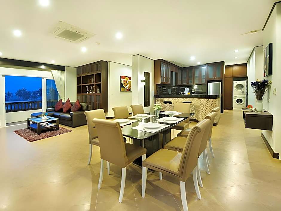 Spacious suite features full kitchen facilities and a private balcony with sea views.