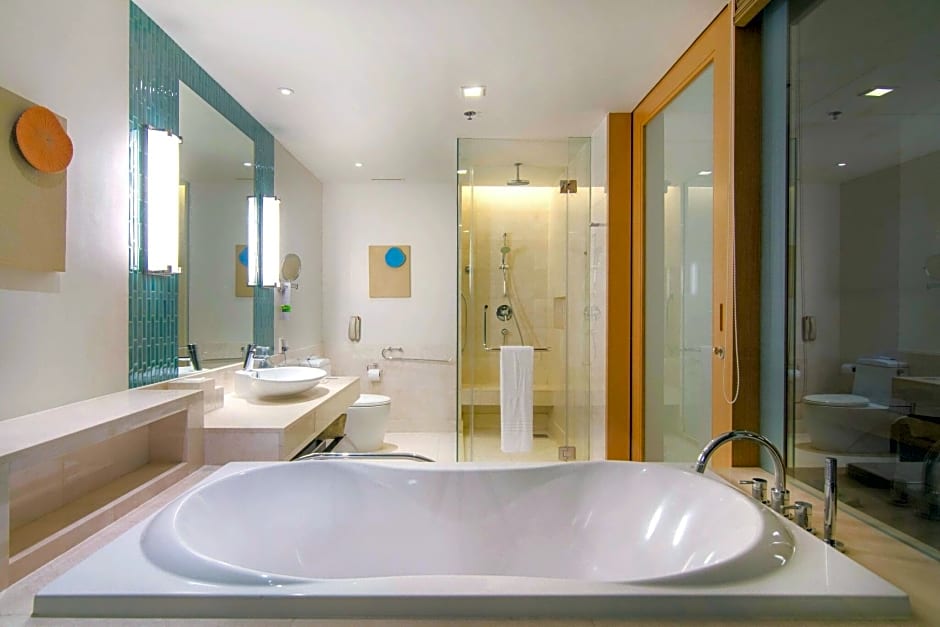 At Renaissance Phuket, fun is around every corner! Adults can unwind at the spa and wellness center or explore exhilarating water sports, while kids enjoy complimentary access to the vibrant kids' club and an exciting waterslide. With free access to the outdoor swimming pool and beach chairs, lounging in the sun has never been more enjoyable. Experience mouthwatering delights at the on-site restaurant or sip your favorite cocktail at the bar as you bask in the gentle sea breeze. With over 655 glowing reviews from guests, it's clear that this resort knows how to make everyone feel right at home!