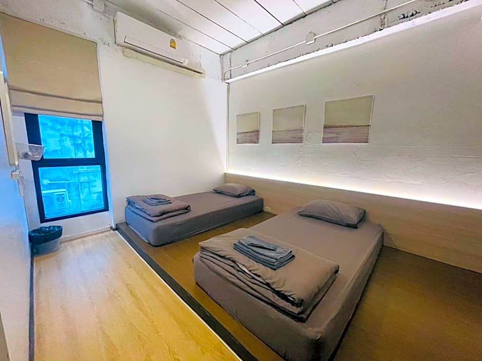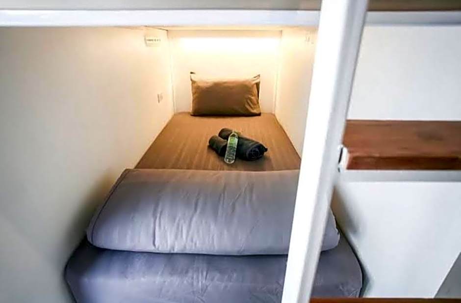 The bed in dormitory room has air conditioning with wood/parquet floors. Guests have access to a shared bathroom and toilet located on the male floor.