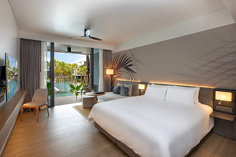 Three outdoor pools invite year-round sun: two adults-only infinity pools in saltwater offer sleek, panoramic views, while a separate kids-only pool with a shallow end keeps little swimmers safe. The pools are paired with sun decks, beach chairs, and umbrellas, plus terrace spaces and garden views that enhance the relaxed Phuket vibe.