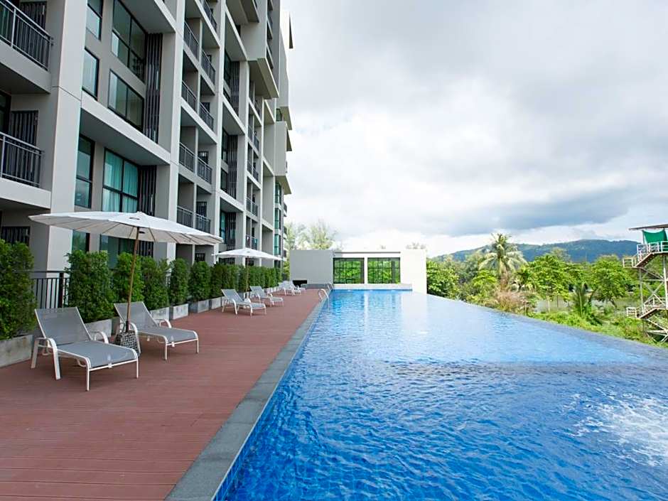 Balconies and terraces invite lingering over mountain views, with easy elevator access to upper floors. The scene blends practicality with a relaxed island vibe, all in a convenient Phuket location.