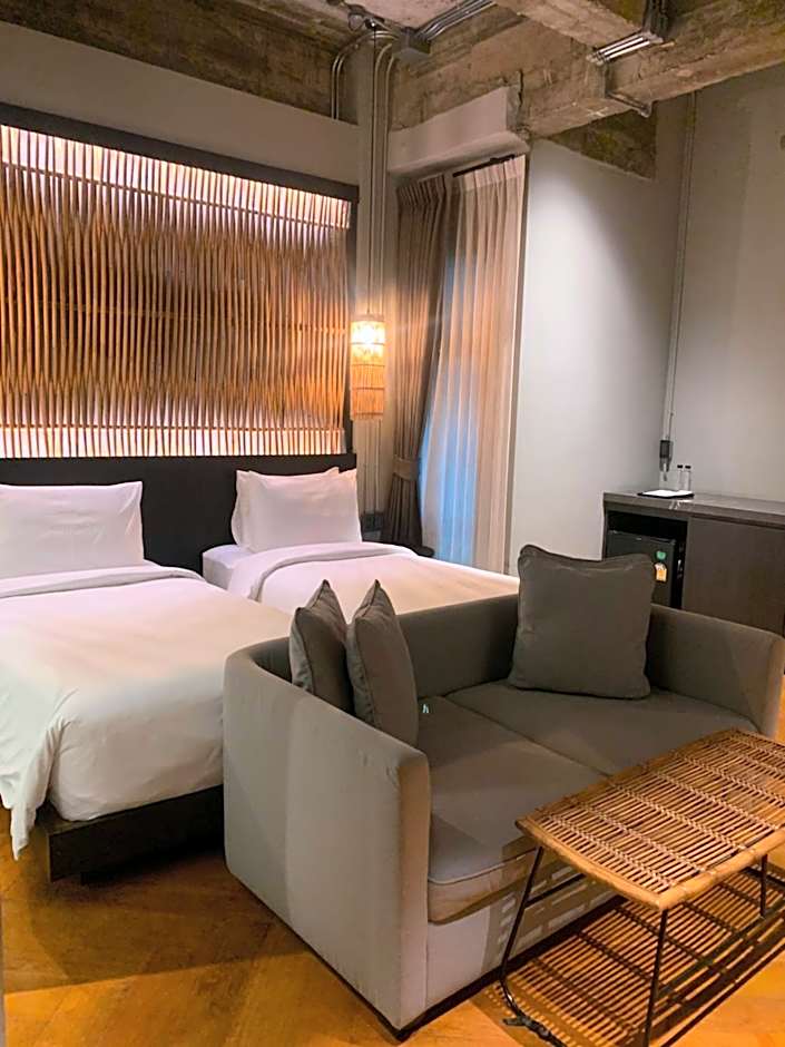 A seating area with a flat-screen TV, a desk, a balcony and a private bathroom are provided in this spacious twin room. The unit offers 2 beds.