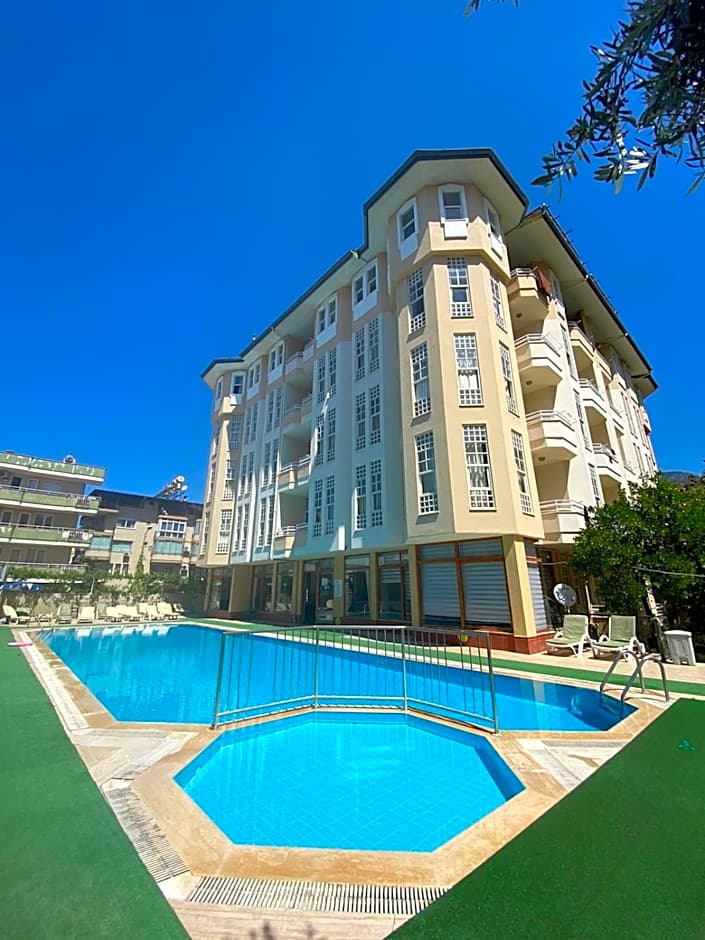Situated at 6 Mülazımlar Sokak in Alanya, 0,9mi from the city center, the property offers a garden view and balcony, with elevator access to upper floors. The presence of a free outdoor pool, free Wifi, and a kitchen setup makes for flexible daily stays.