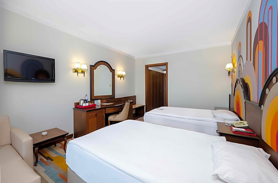 Indulge in a truly relaxing stay with soundproof rooms, a sauna, and beach loungers for soaking up the sun. Whether you're unwinding in the sun deck, savoring a delicious meal at the on-site restaurant, or exploring the vibrant surroundings with the shuttle service, Megasaray Westbeach Antalya ensures a memorable and enjoyable holiday experience for every traveler.