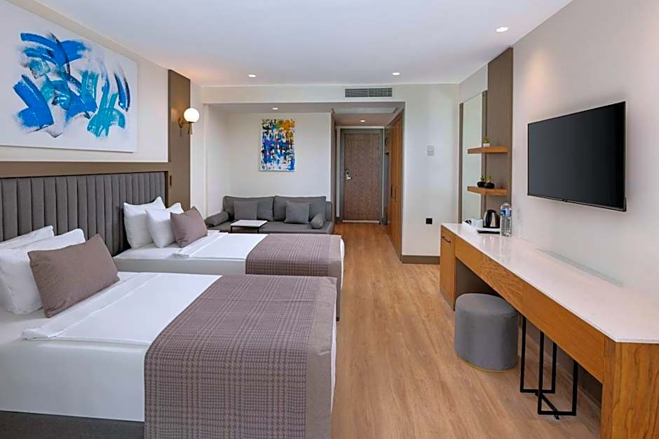 Families and sun seekers will find plenty to do: a Kids' club (free), Kids' pool, playground, and mini golf (free), plus kid-friendly meals (free). Dining is served at a restaurant and bar, with a terrace and occasional live music/performances (free). Wellness options include a Turkish/Steam Bath (free) as well as spa packages (extra charges), along with on-site water sports facilities (free).