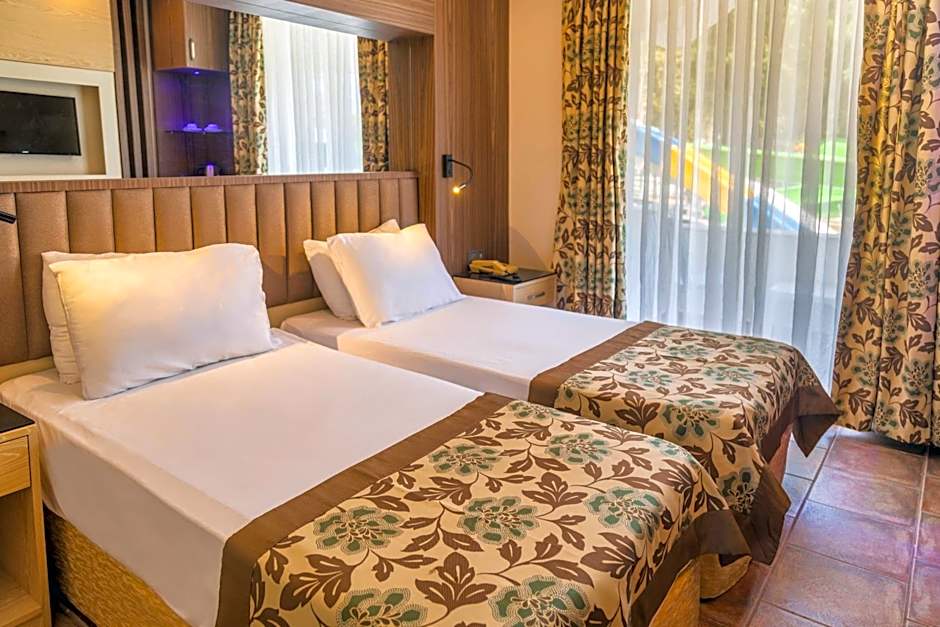 The hotel sits in Merkez with a beachfront location and offers garden view and mountain view options, letting guests soak in the seaside surroundings. The outdoor pool is seasonal and adults-only, adding a touch of exclusive relaxation. Reviews: 9.