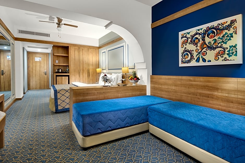 At La Blanche Island, kids rule the roost! With a fantastic kids' club, kid-friendly buffet, and a dedicated kids' pool featuring thrilling waterslides, your little ones will be entertained from dawn till dusk. As the sun sets, unwind at the resort's restaurant, or indulge in a soothing massage at the spa. Families can also take advantage of the babysitting services, allowing parents some well-deserved relaxation time. Plus, daily live music performances ensure the fun doesn't stop when the sun goes down!