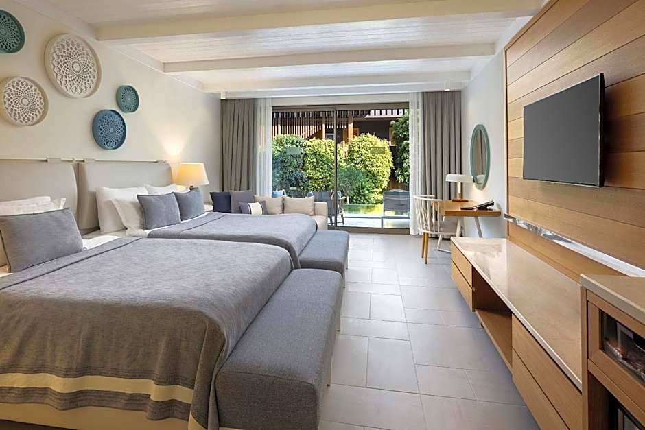 The spacious twin/double room features air conditioning, a mini-bar, a balcony with garden views as well as a private bathroom boasting a walk-in shower. The unit has 3 beds.