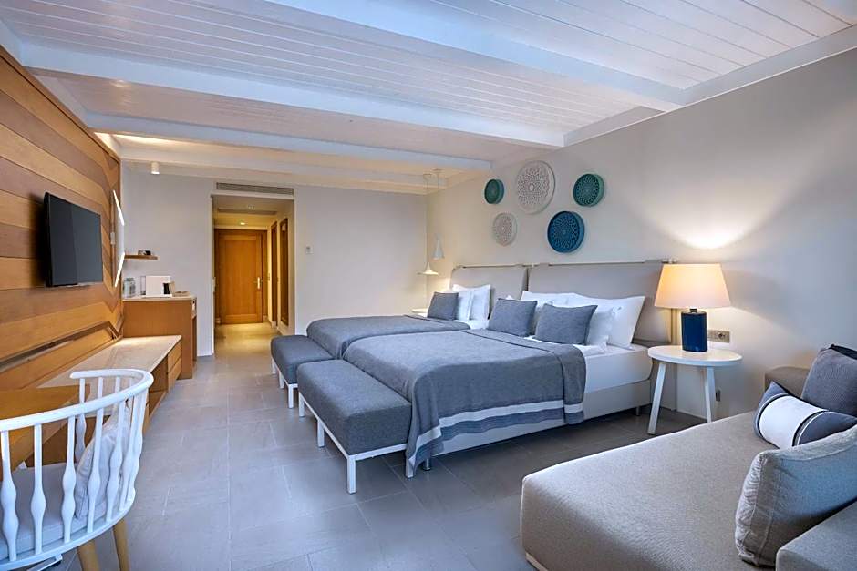 FAMILY ROOM SEA VIEW is 581 square feet and includes either 2 single beds 80-130 width or a double bed 131-150 width.