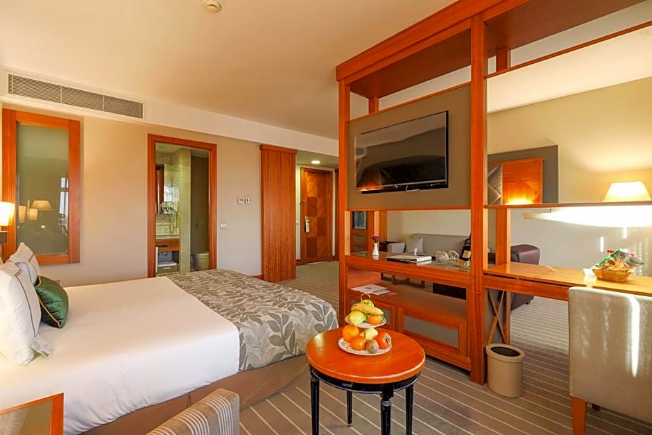 Tugcan Hotel offers a variety of room types including Corner Suite, Deluxe Single Room, Suite, Presidential Suite, Double Room, and Single Room. Smoking is not allowed in any of the rooms. The rooms range in size from 226 sqft to 646 sqft. The occupancy varies from 1 adult and 1 child to 2 adults and 1 child. Bed sizes include Queen size, Twin, and Double beds.