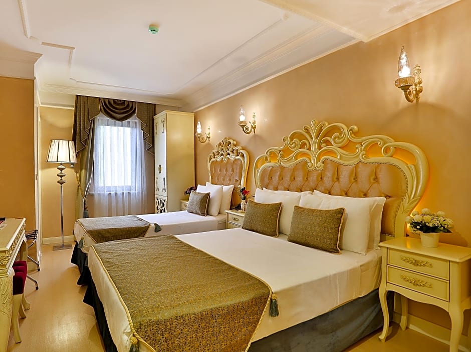 Edibe Sultan Hotel offers a variety of room types including Superior Triple, Superior Double or Twin, Two-Bedroom Connecting Family Suite, and Quadruple Family Room. These rooms range in size from 194 to 388 sqft and can accommodate between 2 and 4 adults, with an additional child. Smoking is not allowed in any of the rooms. The beds in the rooms vary, with options including twin beds, double beds, and queen-size beds.