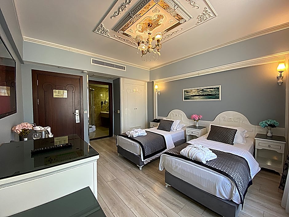 The Gülhanepark Hotel & Spa offers a variety of room types. The Superior Double or Twin Room can accommodate 2 adults and 1 child, has a queen-size bed and twin beds, and does not allow smoking. The Family Room can accommodate 4 adults and 1 child, has twin beds and a queen-size bed, and does not allow smoking. The Superior Single Room can accommodate 1 adult and 1 child, has a twin bed and a queen-size bed, and does not allow smoking. The Superior Triple Room can accommodate 3 adults and 1 child, has a twin bed and a queen-size bed, and does not allow smoking.