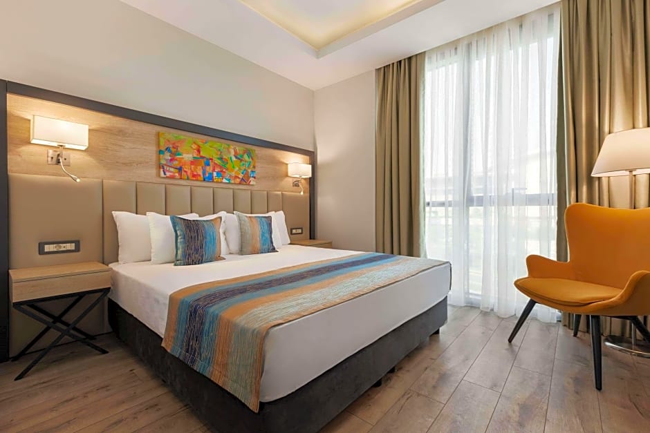 The Ramada Encore By Wyndham Istanbul Basin Express offers a variety of rooms including Deluxe King Rooms, Presidential Suites, Double Rooms, and Twin Rooms. These rooms range in size from 237 sqft to 1238 sqft and can accommodate between 2 to 4 adults with 1 to 2 children. Smoking is not allowed in any of the rooms, and bed sizes vary from Queen to King to Twin beds.