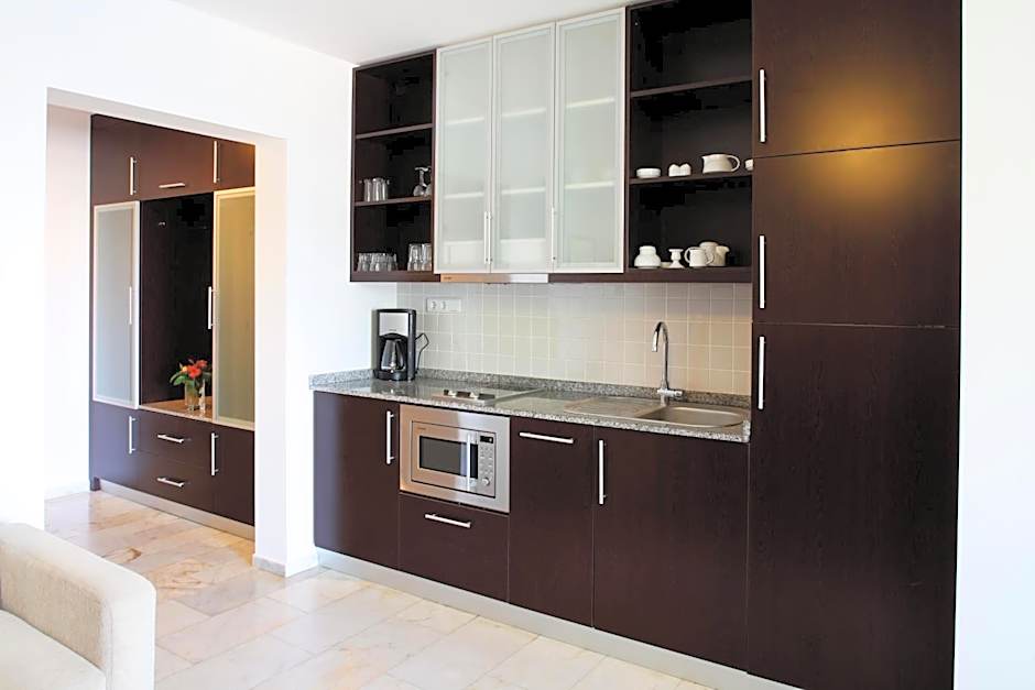SUITE ONE BEDROOM SEA VIEW is 409 square feet and includes either a double bed 131-150 width or 2 single beds 80-130 width plus balcony, terrace, satellite tv , hairdryer, tea and coffee making facilities , ironing set, and safe and is Wheelchair-accessible.