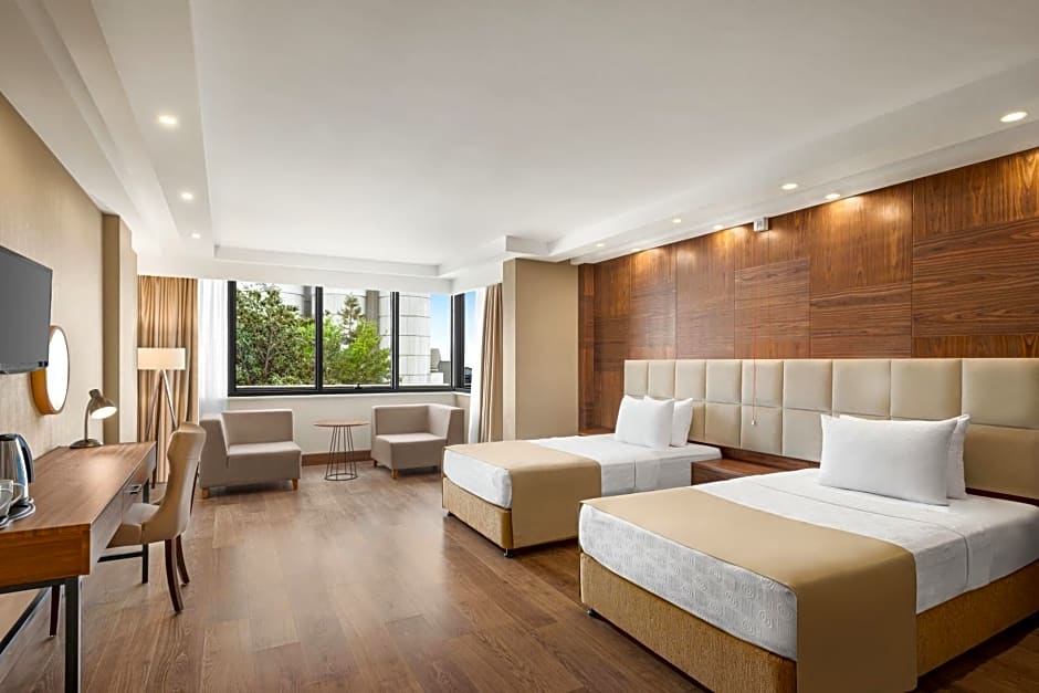 The Ramada Plaza by Wyndham Samsun offers a variety of room types including Suites, Triple rooms, Quadruple rooms, and Family rooms. All rooms are non-smoking and have different bed and room sizes. Occupancy ranges from 2 adults and 1 child to 4 adults and 2 children depending on the room type.