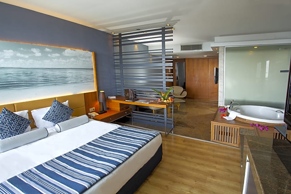 Convenience meets luxury at Sherwood Blue Belek - Adults Only, with amenities like free WiFi, private parking, and air conditioning provided for your comfort. Whether you choose to enjoy a cocktail at the bar, take in picturesque views from the sun deck, or receive top-notch service from the 24-hour front desk, this resort has everything you need for a dreamy Turkish getaway. Embrace serenity and decadence in equal measure at this top-rated resort, where relaxation and upscale experiences seamlessly blend to create a memorable vacation for every guest.