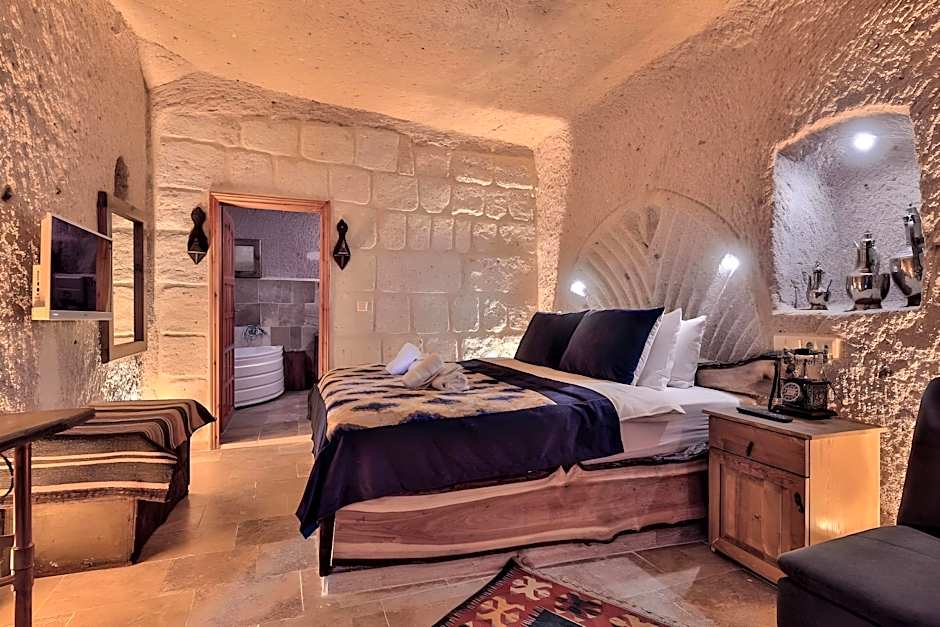 Decorated with antique details, this queen room offers a sofa, electric kettle with tea&coffee setup and a bathrobe. Complimentary chocolates are also offered in this suite. THERE MIGHT BE NO ANY WINDOW IN THESE CAVE ROOMS!