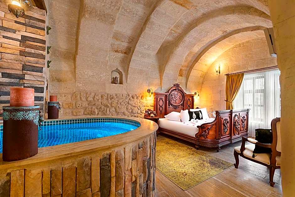 Every suite comes with its own private pool, setting the perfect scene for a romantic escape or a much-deserved solo retreat. The atmosphere is further enhanced by the state-of-the-art amenities including complimentary Wi-Fi, a rejuvenating spa tub, and soundproof rooms ensuring peace and tranquility. With spectacular mountain and landmark views from the terrace and balconies, your mornings will start off with the breathtaking sights that Ürgüp has to offer, making those Instagram feeds shine!