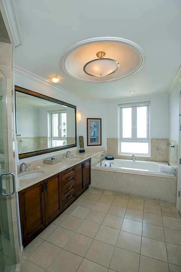 SUITE OCEAN VIEW TWO BEDROOMS is 2045 square feet and includes a king-size bed 150-183 width plus living room, hairdryer, tea and coffee making facilities , and ironing set.