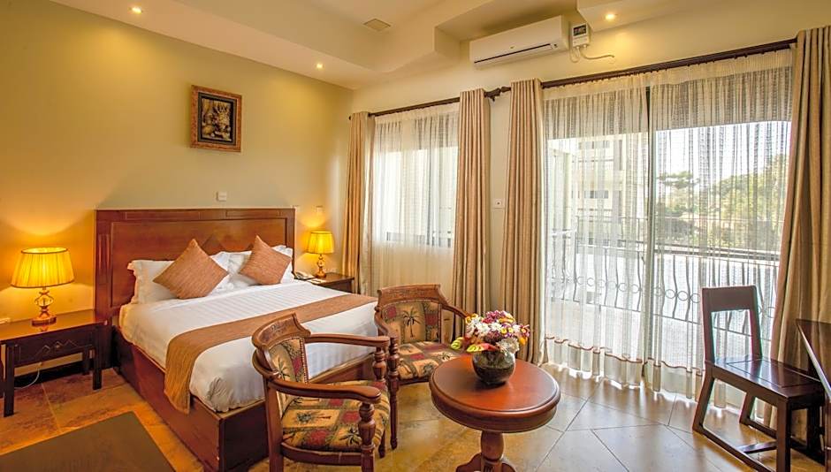 Relax in beautifully appointed non-smoking rooms featuring air conditioning, private bathrooms, and balconies with garden views. Guests can savor delicious meals at the hotel restaurant or enjoy refreshing drinks at the on-site bar. The hotel also offers live music performances, making it the perfect place to unwind after a day of exploration.