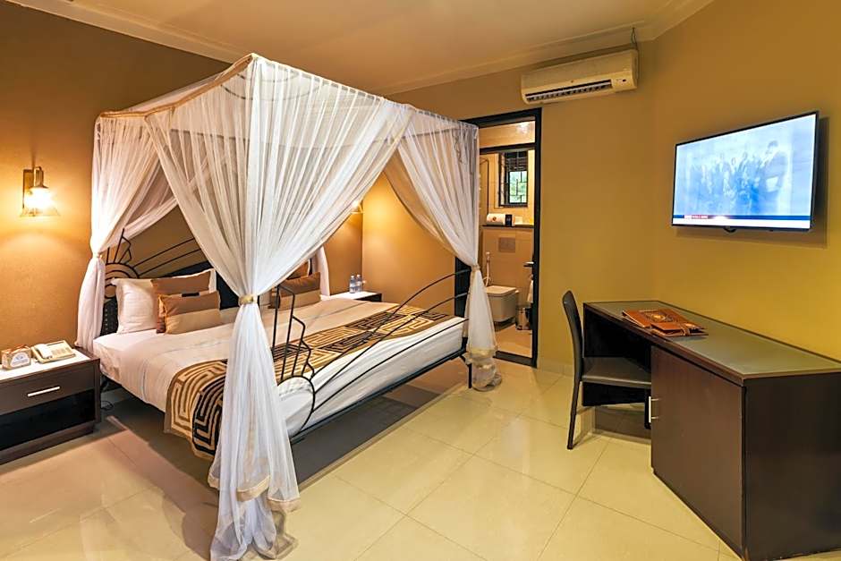 The Speke Resort and Conference Center, a luxurious 4-star hotel, is a tropical paradise nestled on Wavamunno Road, just 6.2마일 from the bustling city center of Kampala, Uganda. This stunning resort offers a serene retreat with a breathtaking view of the garden and features pet-friendly accommodations. With a multitude of amenities such as an outdoor swimming pool, sauna, free breakfast, and a fitness center, this resort is perfect for relaxation and unwinding. The Speke Resort and Conference Center offers an array of water sports facilities on site for those seeking adventure during their vacation.