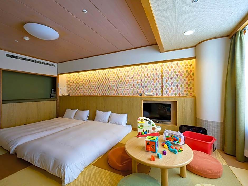 Водні можливості включають критий і відкритий басейни: цілорічний критий басейн із підігрівом, неглибокий і з видом, призначений виключно для дорослих; а також сезонний відкритий басейн для дітей із мілководдям. Безкоштовна гаряча купіль (онсен) і сауна додають релаксації після дня на схилах або прогулянок пагорбами.