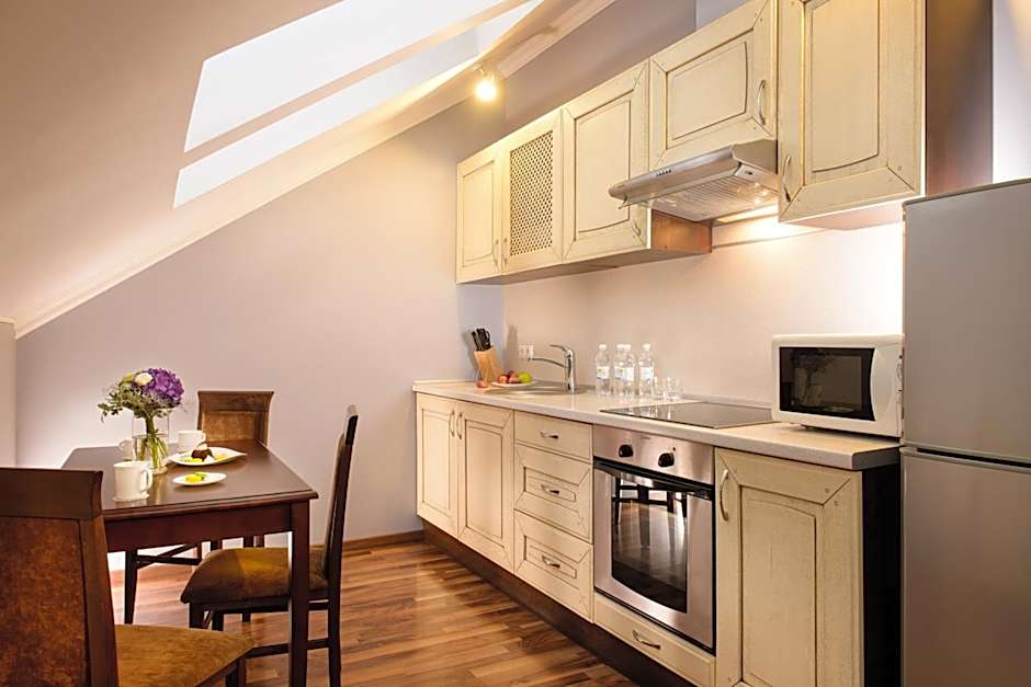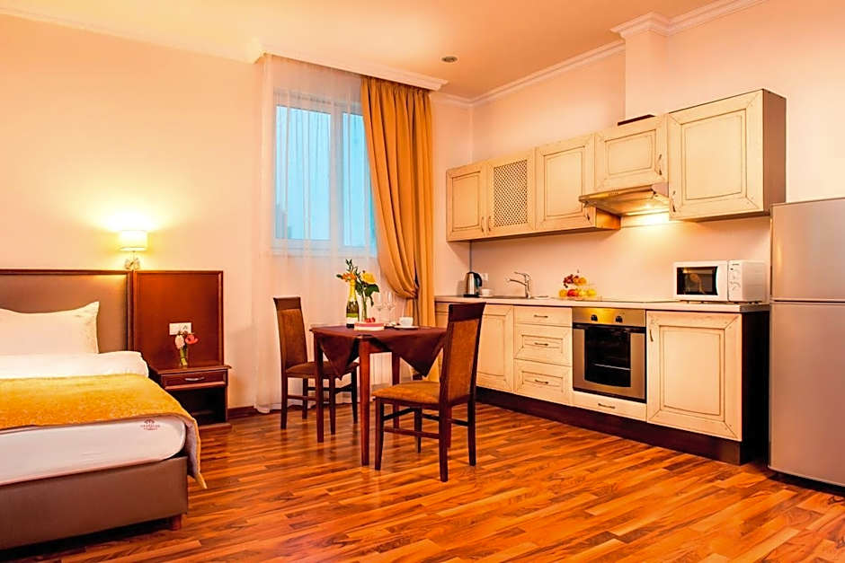Apartment Superior is 538 square feet and includes a double bed 131-150 width plus a sofa bed plus living room.