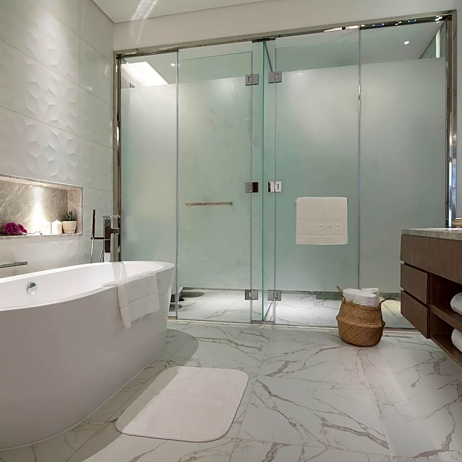At Al Jaddaf Rotana Suite Hotel, guests can indulge in leisure activities such as spa/wellness packages, massages, sauna and steam room relaxation, and fitness center workouts. Families can enjoy the outdoor swimming pool with a separate kids' pool, along with beach chairs/loungers for ultimate comfort. The hotel offers a variety of dining experiences, including Italian and traditional cuisine at TIMO, diverse international cuisine at THE LIST BAR, and a modern ambiance at THE TEA ROOM Lobby Lounge Café. Guests can also savor poolside snacks at AQUARIUS Pool snack bar. Immerse in a luxurious environment with modern, family-friendly, and romantic atmostphere. All these amenities provide an ideal setting for guests to unwind and create lasting memories during their stay.