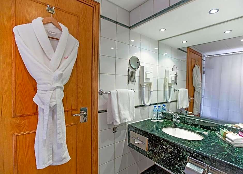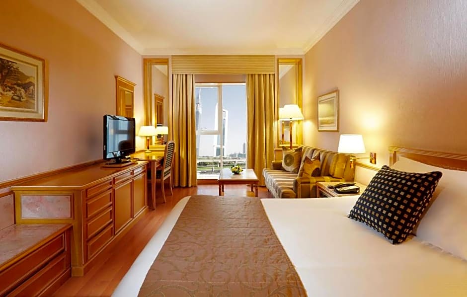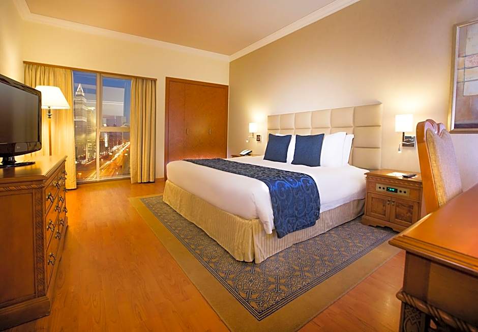 CLUB ROOM SHEIKH ZAYED ROAD VIEW is 312 square feet and includes a king-size bed 150-183 width plus hairdryer, tea and coffee making facilities , ironing set, and bathrobes.