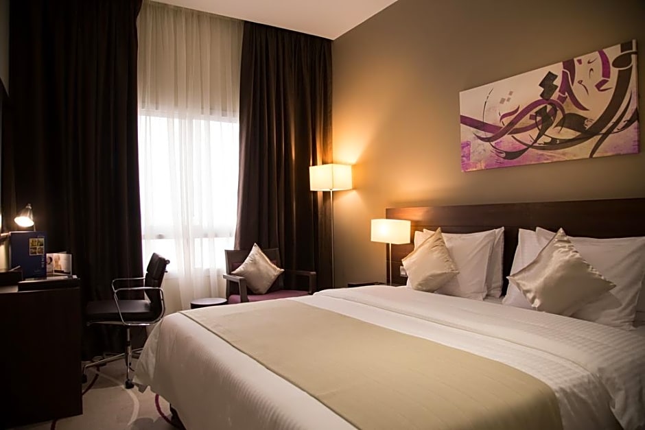 Suite classic one bedroom is 108 square feet and includes a queen-size bed 150-154 width plus hairdryer, ironing set, and safe.