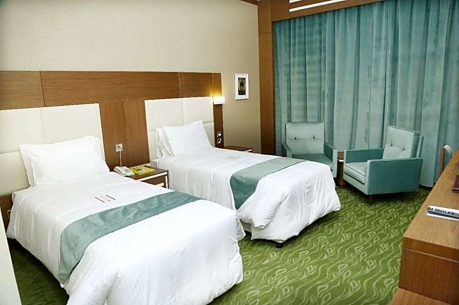 The hotel offers a Standard Double Room with a 355 sqft size, accommodating 2 adults and 2 children in a non-smoking environment with a King size bed. The Junior Suite, with a room size of 657 sqft, also accommodates 2 adults and 2 children, featuring a King size bed in a non-smoking setting. Additionally, the Deluxe Double Room, spanning 366 sqft, suits 2 adults and 2 children with a non-smoking environment and a King size bed.
