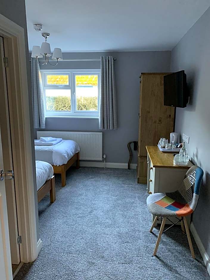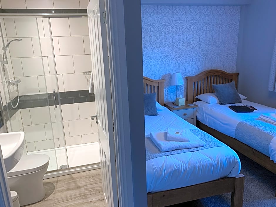 This suite features 1 king size double bed in one room and a double and a single in the other. There is a TV and tea/coffee making facilities. The private internal bathroom has a bath with overhead shower.
