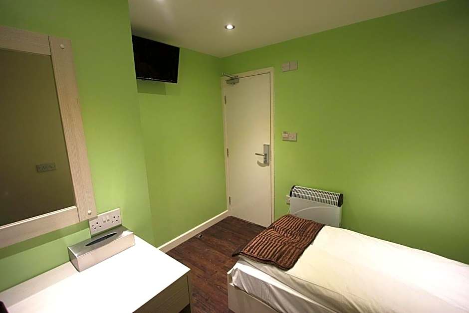 Without a window, this room has a single bed, tea/coffee making facilities, towels, toiletries, wardrobe, a desk and a TV with Freeview.